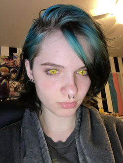 Yellow contact lenses work by blocking blue light, which is known to cause visual discomfort and reduce clarity in low light conditions. By filtering out blue light, yellow lenses can enhance contrast and reduce glare, improving vision in low light environments. Or, simply just for fun to spice up your occasion!