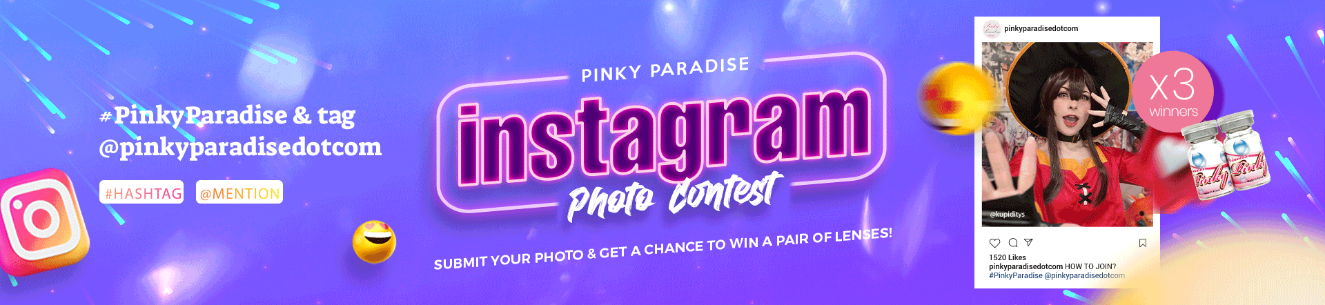 Jeder Gewinner erhält ein Paar Circle Linsen von PinkyParadise. Die Gewinner werden auf Instagram bekannt gegeben und per Direktnachricht kontaktiert.