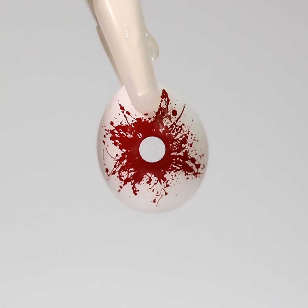 Take your horror cosplay to the next level with Princess Pinky Blood Splash Mini Sclera lenses. Featuring a white sclera backdrop splattered with dark crimson tones near the pupil, this design mimics a gruesome, blood-spattered eye for an intensely realistic effect.
