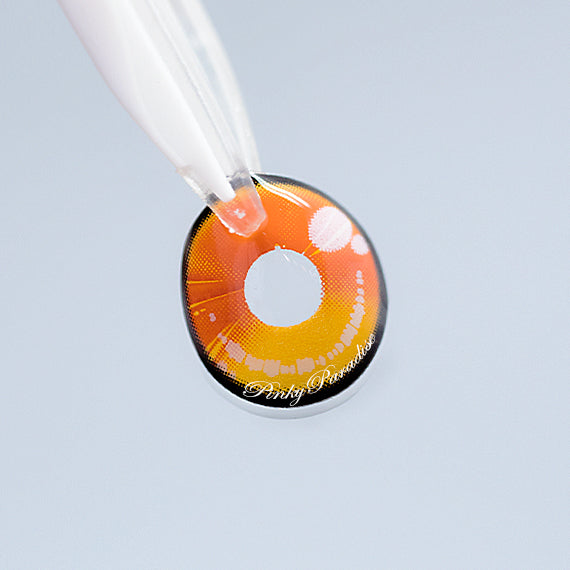 A sunny bright yellow that radiates the main character's energy. Featuring a bright orange color that gradually transitions into a luminous yellow hue, these lenses ignite a fiery energy that will make you feel like the true spotlight, illuminating wherever you go with your captivating presence. With the striking crescent design and uniquely vivid gradient shades, you can shine like a star at your next convention or party.