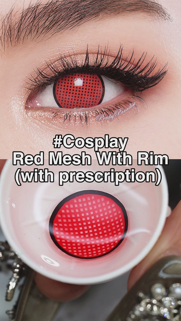 Lentes de contacto Princess Pinky Red Mesh con borde para cosplay y Halloween (con prescripción) [anuales]
