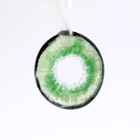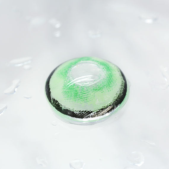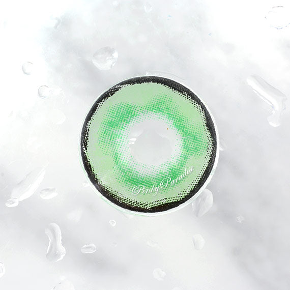 Este lente tiene un verde menta pastel como color base, mezclándose con un toque de verde espuma de mar en el centro para captar al máximo la atención de los ojos. Estos lentes se ven súper brillantes tanto en ojos claros como en ojos oscuros.