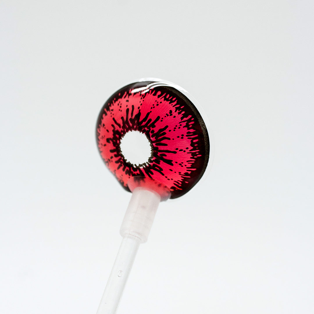 Introducing the Princess Pinky Dolly Plus Red Sclera lenses, the ultimate choice for anyone wanted to make a fiery impression. These 22mm sclera contacts feature a bright red lens with a dramatic black rim and a striking black explosion design surrounding your iris. Perfect for SFX and Halloween use.