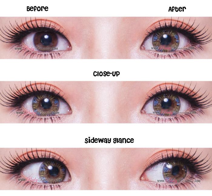 Los diseños alternados de color azul cielo y lima de Vassen Rainbow Eyes Light Greenish dan una apariencia cristalina. Estas lentillas complementan un look gyaru y ulzzang cotidiano. Incluso sin un anillo limbal, con 14,5 mm de diámetro proporciona un buen aumento. En ojos oscuros proporciona el efecto cristalino perfecto. En ojos claros, ilumina intensamente, agranda y da el efecto de ojos de muñeca definitivo. Estas lentillas de colores se pueden usar como lentillas de cosplay para personajes como Superwoman, Maggie Greene, Loki de Marvel's Avengers, Cadence, Briana, Loki y David Bowie.