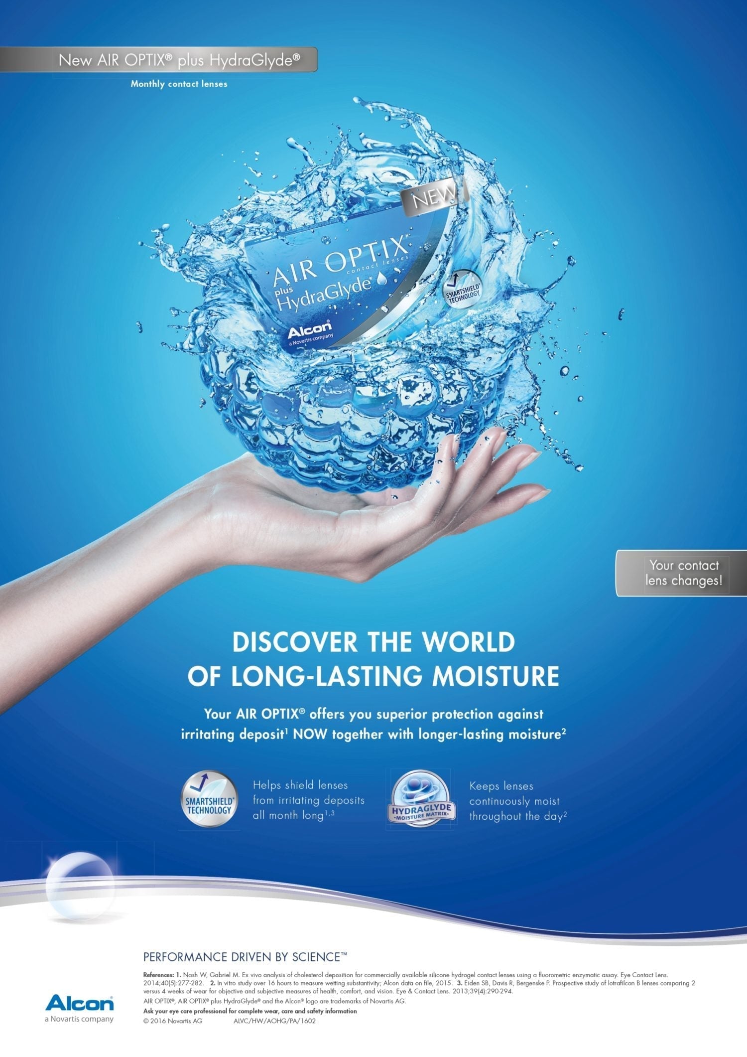 Les lentilles de contact Air Optix Plus HydraGlyde d'Alcon sont fabriquées avec un nouveau matériau hydrogel offrant une perméabilité à l’oxygène cinq fois supérieure à celle des lentilles de contact classiques.