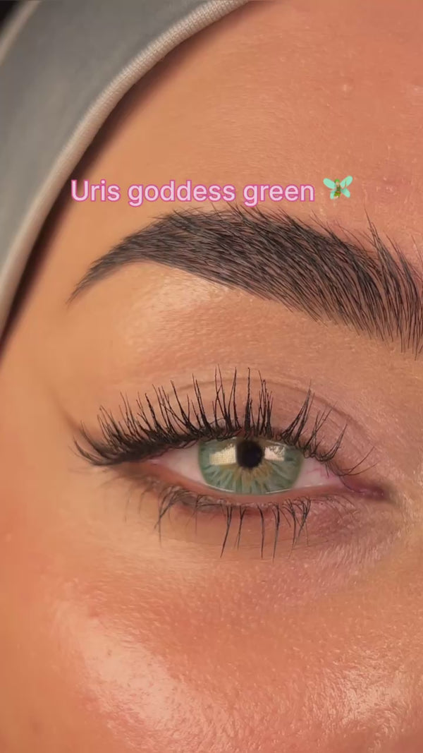 Les lentilles Goddess Green présentent un motif d'iris vert glacial au centre, entouré d'un anneau limbique vert vif. La séduisante teinte d'émeraude ajoutera une touche de mystère à votre regard et fera ressortir l'éclat de vos yeux.