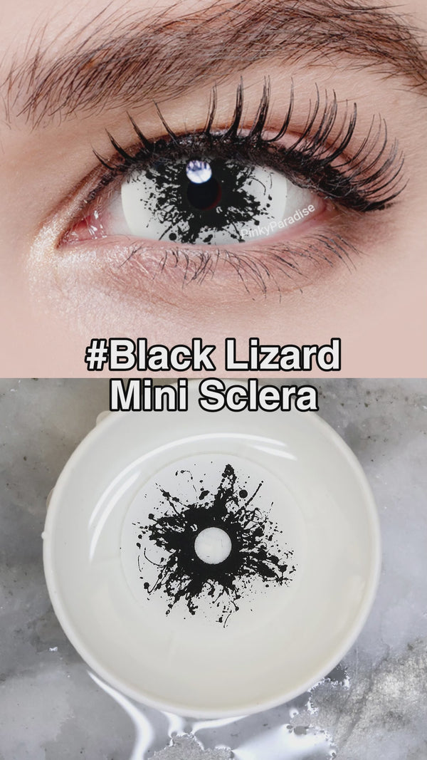 Soczewki Princess Pinky Ink Splash Mini Sclera zostały zaprojektowane dla osób, które uwielbiają przesuwać granice. Zapewniają niepokojąco zniewalające spojrzenie dzięki wyraźnym czarnym plamom atramentu na tle białej twardówki.