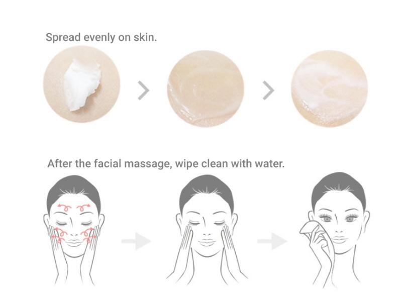 Use the spatula to take a small amount and massage gently in circular motions. Rinse well with lukewarm water and pat dry.