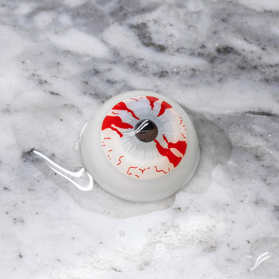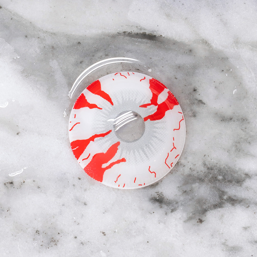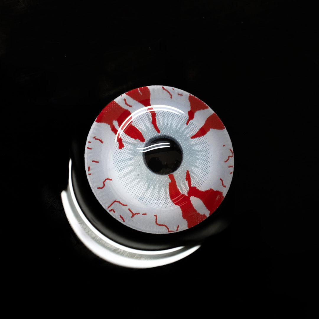 Searching for the final touch for your eerie look? Well, then you have come to the right place! So realistically disturbing that people will avoid you like a plague with these lenses on! Striking red blood-like streaks creep across the edges, contrasting against a cold, lifeless grey center, creating an alarming, infected look.
