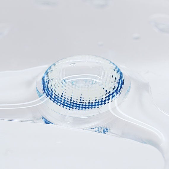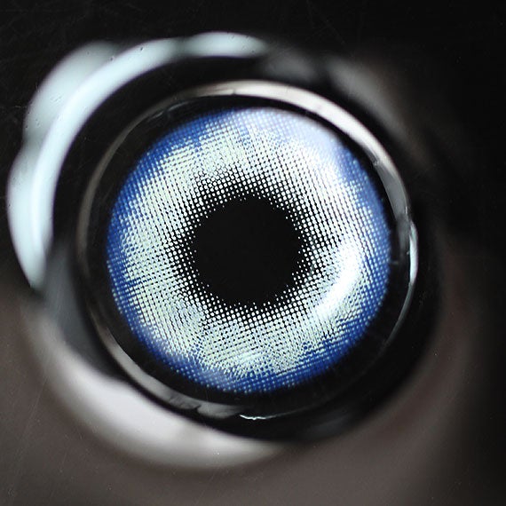 A dramatic fav! Aqua blue has a super bright grayish blue color with deep blue limbal ring that really stands out, perfectly mimicking a fantasy effect. These lenses blend perfectly with light eyes and cover dark eyes extremely well.