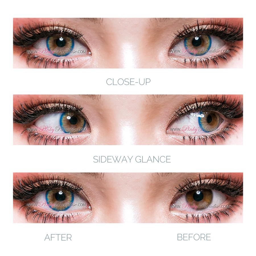 Boho hazel is a light hazel color contacts with a beautiful twist. Inspired by the luscious brown eye genes from the Asian and the mystery blue or green eye genes from the Caucasian, this color is totally one of a kind which denotes a fusion of the East and West. The bright blue limbal ring gives a beautiful contrast that'll truly make your eyes pop like never before!