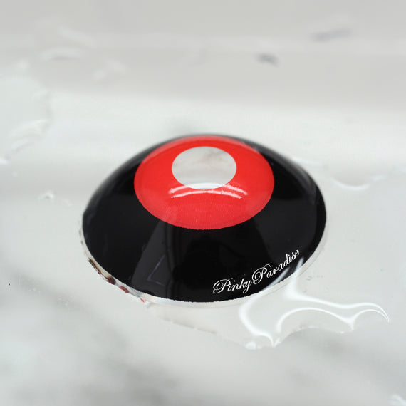 Featuring full black sclera with blood red pupil, these colored contact lenses are specially made for Kaneki Ken and Uta from Tokyo Ghoul that perfectly imitates the state of Kakugan. When a kakugan is activated, it turns the sclera black, with a red iris, and red veins across the eye.