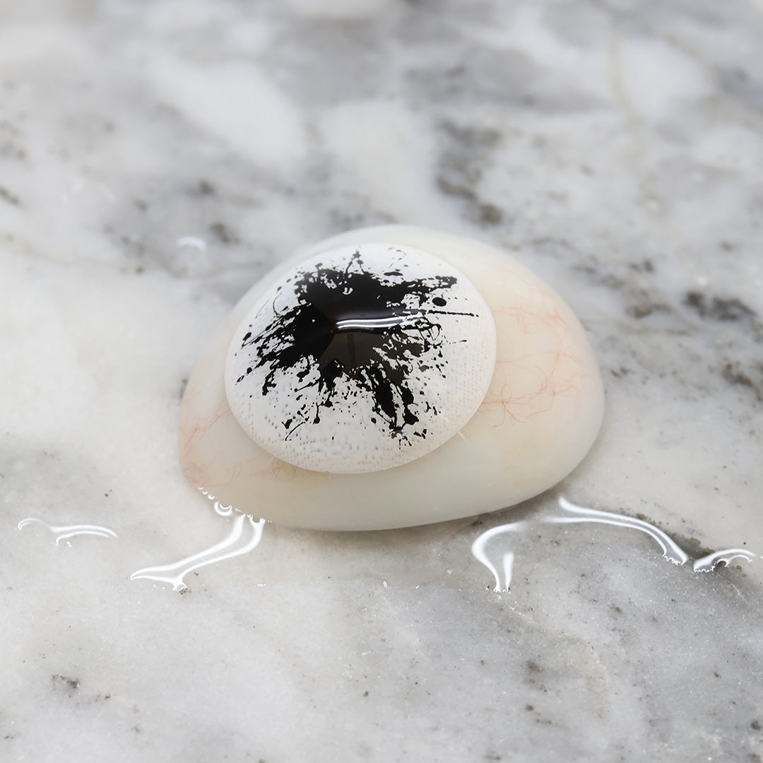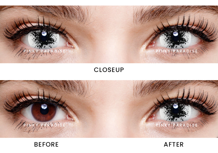 Princess Pinky Ink Splash Mini Sclera lenses are designed for those who love pushing boundaries. They deliver a disturbingly captivating stare with vivid black ink splatters that are set against a white sclera.