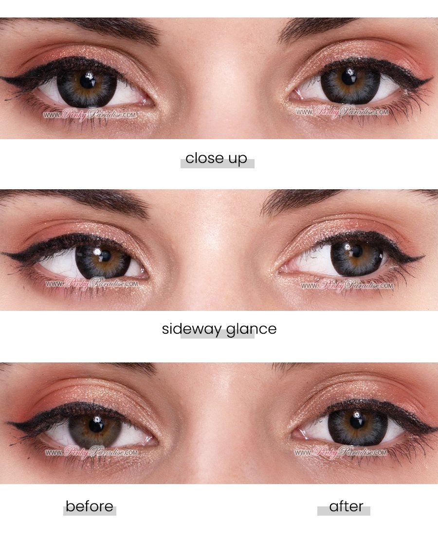 So you're all about those chic and bold style? Well, with Lolita Grey toric lenses, your eyes will definitely be an eye catcher! The thick black ring with a pale grey shade adds an additional enhancing effect to your eyes. These lenses suit every eye-color, match with dark outfit and you??e ready to break the rules!