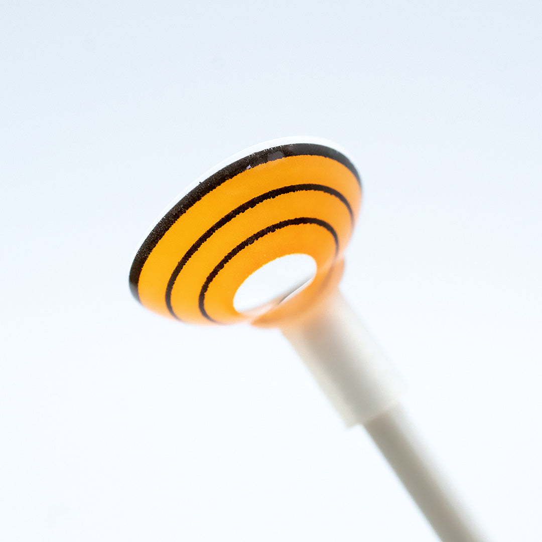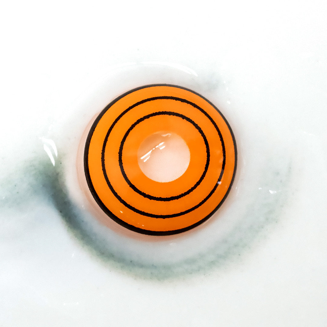 The lenses feature a solid orangey-yellow shade with black rings that completely cover your natural eye color. The Makima-inspired design is perfect for seamlessly embodying this beloved character and provides a show-stopping effect ideal for cosplay events, Halloween, or themed gatherings. The 17.0mm supersized design offers striking visual impact, similar to full sclera lenses, while providing a much more comfortable wearing experience and making them easier to put in, just like regular contacts.