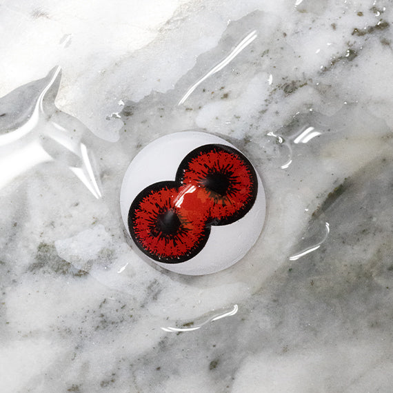• Inspired by the fan-favorite Dolly Plus Red, now elevated with an eerie blend of deep crimson, scattered black specks, and bold limbal rings for maximum impact.