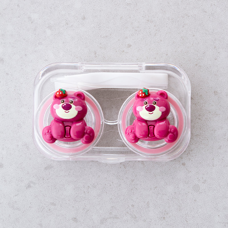 Worried about your lens solution leaking all over your bag? Our Strawberry Bear Travel Lens Case got you covered. It features a rubber lid that make sure the contact lens solution stays securely in the case. No more messy accidents!