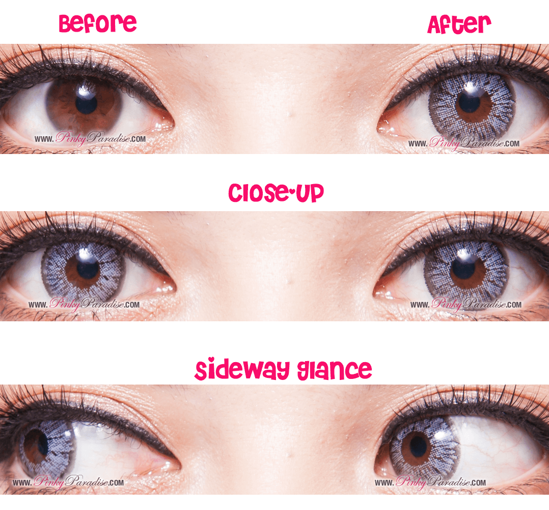 此款美瞳可完全覆盖任何眼睛颜色,带来显著的变化。在强光下,颜色鲜明,非常吸睛;而在较暗环境中,则呈现更自然的中性灰色调。